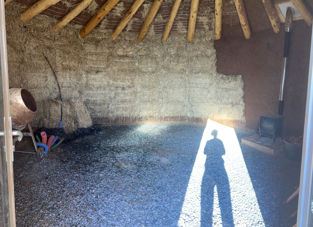 Cet été (dates à valider), ce sera couche de finition terre/paillettes à l’intérieur ainsi que pose du plancher et du skydôme (menuiserie puit de lumière)