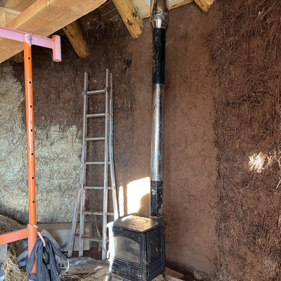 Du 06/04 au dimanche 12/04 2026 (suivant le nombre de participants et la vitesse de travail, il est possible que nous finissions avant), ce sera donc première et deuxième couche des enduits terre/paille à l’intérieur (couche d’accroche et couche de corps) avec la chaleur du poêle à bois si besoin, et deuxième couche de corps des enduits chaux à l’extérieur, en espérant que la météo le permette.
