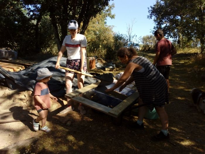 1- du 9 au 24 juillet montage des murs (la structure bois est faite) et prépa de zones pour la forêt-jardin s’il reste du temps