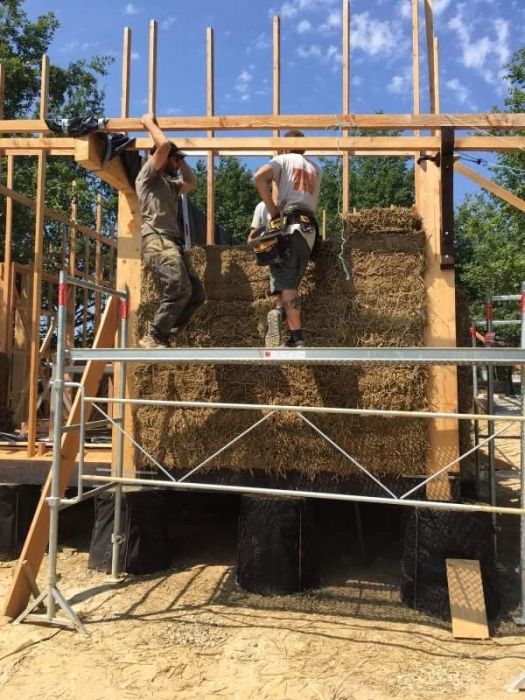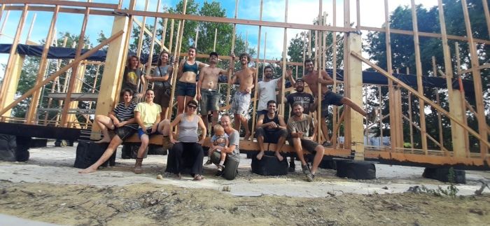 -les 4 suivants serviront à construire la maison de mon papa et ma maman sur ce même terrain. Cette construction sera elle aussi en terre,paille et bois. Toutes les étapes de construction seront abordées lors des ces chantiers. Fondations pneus, mur en CST (paille porteuse), enduit couche de corps, pose de vitrages fixes et ouvrants,fabrication de l’ossature bois, fabrication du plancher et charpente. Ces chantier seront encadré par 2 professionnels.