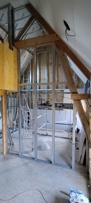 2 - Raillage des cloisons intérieures (il n’y en pas beaucoup à faire, il n’y a que 35 m² au sol environ)