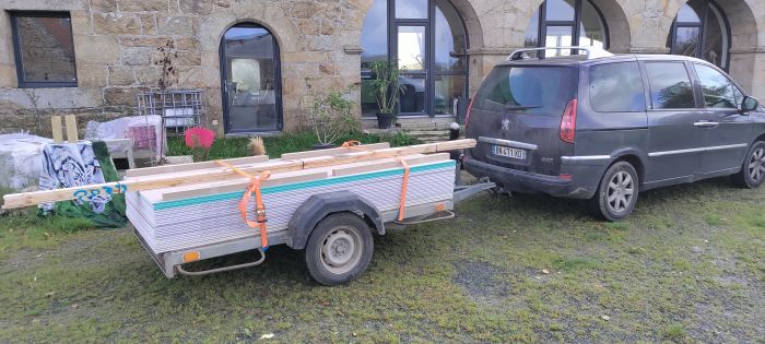 1 - Placage des murs périphériques et plafonds/toit (35 m² au sol environ) :