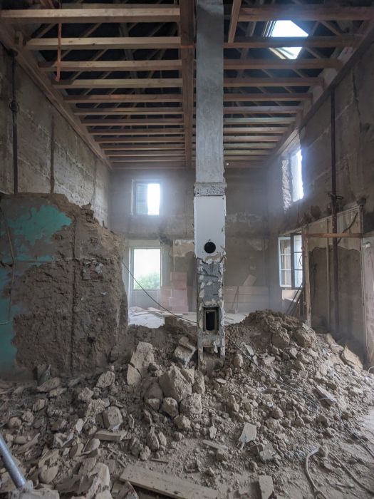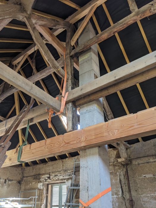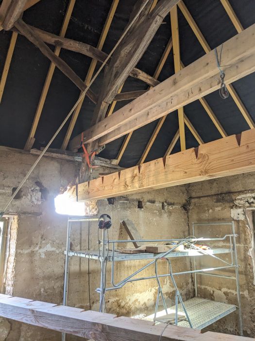 Cette solution est plus pertinente que les tirants acier qui ne servent pas à grand chose sur le bâtit terre crue.