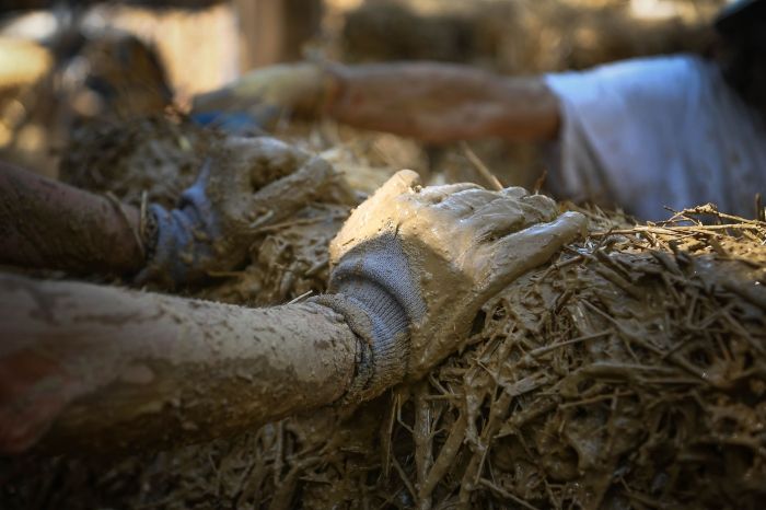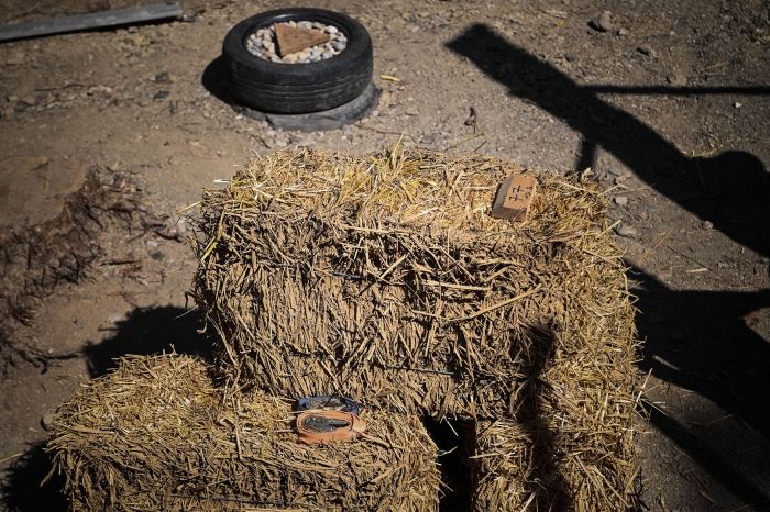 A partir du 27 octobre nous organisons un petit chantier participatif de 8 jours consécutifs pour poser la charpente réciproque sur le bâtiment hexagonal de 30m2 en paille et terre construit cet été.