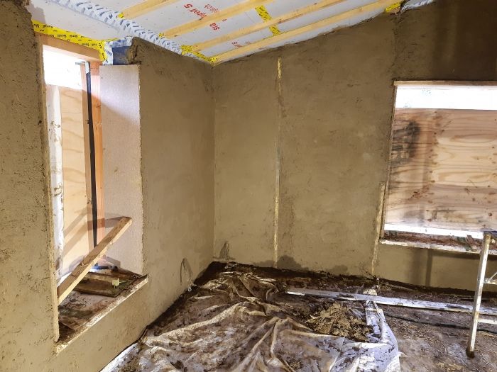 - mise en place des enduits intérieurs terre (la plupart des weekends de septembre, octobre et novembre, à suivre sur les publications)