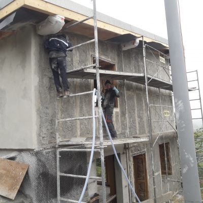 La paille sera à partir du 20 août jusqu'au 31 août. Les enduits à partir de 14 septembre, tous les jours du mercredi au samedi.