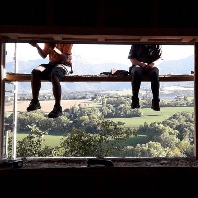L’ossature bois, en technique GREB, est posée. On cherche de l’aide et à former des futurs autocontructeurs(rices) pour poser les bottes de paille, puis faire les enduits chaux et terres.