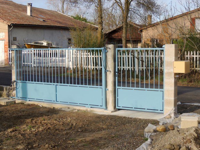 On pose à la place un portail coulissant motorisé (faac delta) sur une semelle, en dressant 2 piliers et une clôture basse maçonnée.