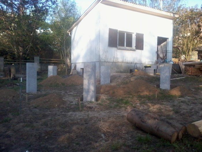 -Poser un linteau (ou un IPN ?) en vue d'ouvrir le mur entre la maisonnette et l'agrandissement. Je pense poser le linteau, refermer, et j'ouvrirai en juillet.