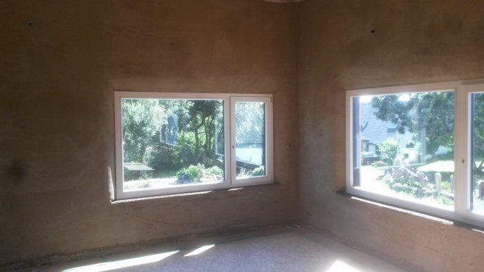 Après avoir isolé avec des bottes de paille, puis les avoir enduite d'un enduit de corps nous préparons tranquillement les enduits de finitions.