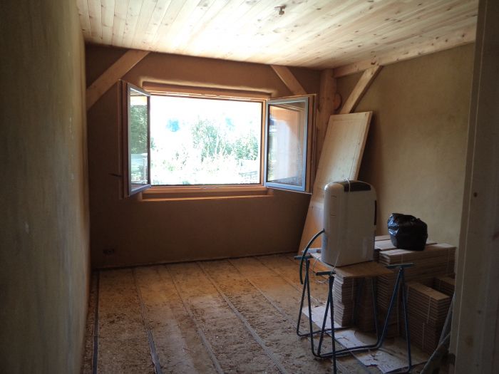 L'objectif de ce chantier est d'arriver au niveau de préparation requis pour que les artisans puissent faire la chape en terre et mortier de chaux, finir le passage des gaines et tuyauterie d'eau et de chauffage et faire l'isolation par insufflation ouate de cellulose.