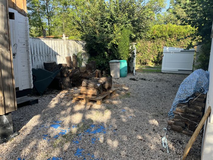 - bois : un arbre a été abattu l’an dernier. Débitage du tronc