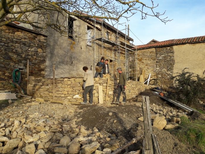Qu'il neige, qu'il vente ou que le printemps pointe son nez, l'équipe a persévéré : le mur de pierres sèches qui soutient la terrasse (et supportera l'échafaudage pour la réfection de cette partie de façade) est quasiment terminé. Belle aventure, enrichissante pour tous, tantôt amusante,...Afficher la suite Qu'il neige, qu'il vente ou que le printemps pointe son nez, l'équipe a persévéré : le mur de pierres sèches qui soutient la terrasse (et supportera l'échafaudage pour la réfection de cette partie de façade) est quasiment terminé. Belle aventure, enrichissante pour tous, tantôt amusante, tantôt casse-tête, parfois quasi méditative, pour un résultat surprenant : ce mur me semble être là depuis toujours...
