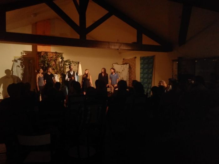 Pour finir en beauté et remercier les volontaires venus nous prêter main forte, ce week-end était placé sous le signe du théâtre avec la venue d'une sacrée troupe de comédiens amateurs qui nous ont régalé de deux pièces dans la salle polyvalente de l'écolieu.