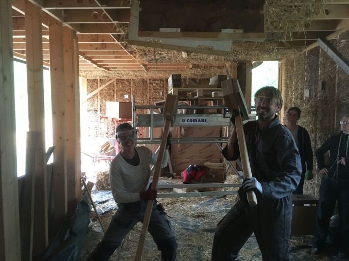 N'hésitez pas à nous contacter, si vous voulez nous rejoindre pour les prochains chantiers : 7 au 13 octobre, 28 octobre au 3...Afficher la suite On presse, on coupe, on monte, on persuade et on recommence ! La Notre toiture se pare de paille.