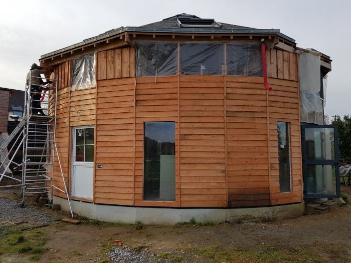 Le bardage est en cours, probablement terminé dans 2 semaines.
