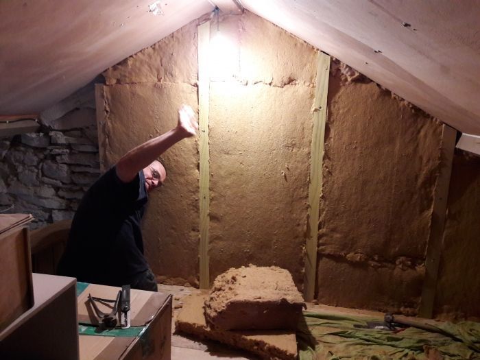 La difficulté, à ce stade dit des "finitions", et même si le chantier est loin de se terminer, est d'aller au bout, de choisir une pièce à la fois... Pour le moment, il s'agit des combles, du Hall / bibliothèque, ainsi que d'une pièce fort utile : les toilettes de l'étage. Après l'isolation laine de bois, nous en sommes au stade enduit de terre crue, petite "menuiserie"... L'étape suivante sera une douche... tadelakt... encore une énigme à aborder... J'avance doucement en cette période de confinement, me familiarisant avec la matière ... je tiens à remercier Bruno qui est venu donner un sacré coup de main en février, et tous les autres... la maison est emplie de leur présence.