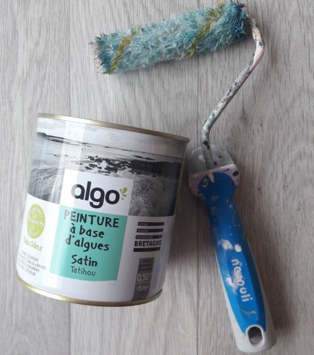 Chantier peinture écolo du 27 juillet au 1er aout. On utilise la peinture algo produite en bretagne et conçue a partir d'algues.