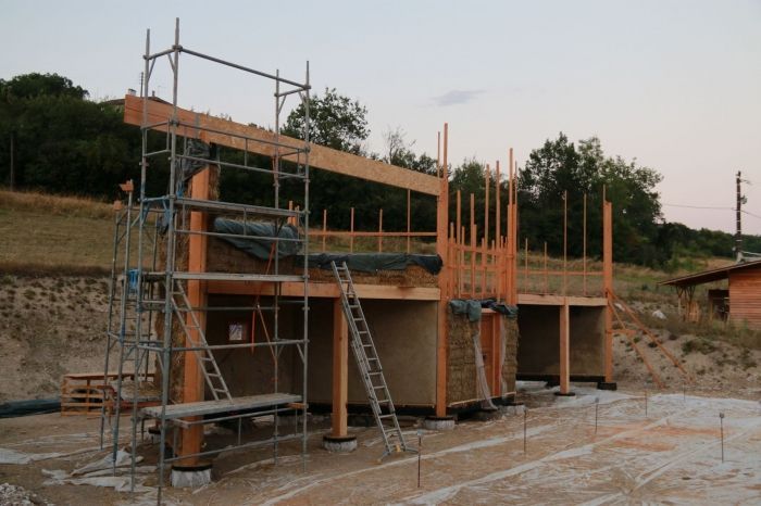 Thibault M. sur son chantier Maison bioclimatique en terre paille...