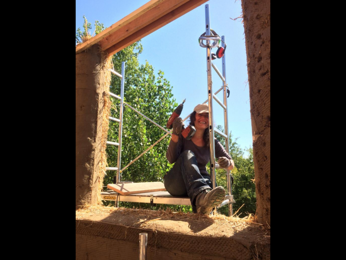 Julien L. sur son chantier Permaconstruction en terre-paille...
