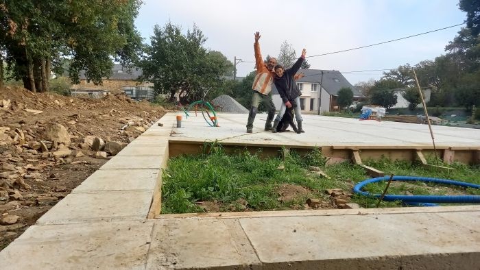 La dalle est terminée ! Lundi, nous recevons le bois pour la suite !