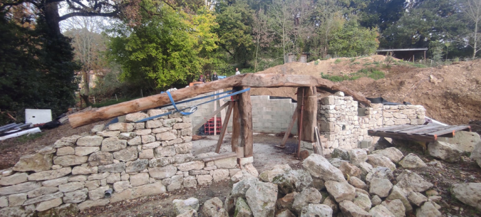 Pendant ce temps là, ça bosse sur la cabane enterrée... Solivage, Ossature et parquet en prévision des projections Chaux/Chanvre de Février!