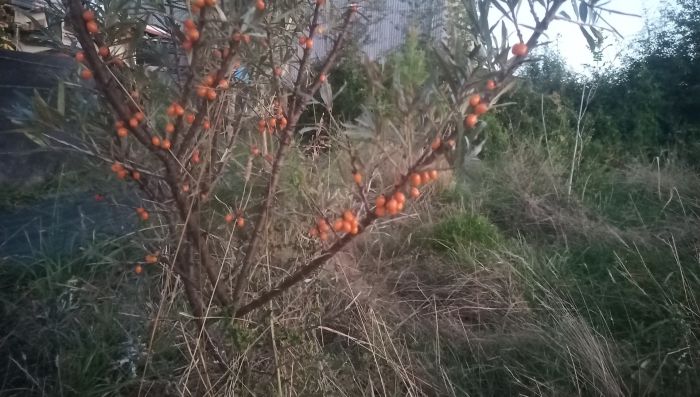 Ces jours-ci nous récoltons nos premières argouses, des petits fruits acidulés pleins de bons nutriments.