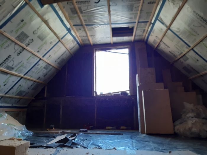 Maintenant une semaine qui change pas mal de choses ! Arrivée de la seconde vague des fenêtres, achèvement par les artisans de l'isolation sous toiture.