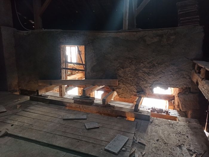 Aujourd'hui, c'était réflexion au sujet du mur soutenu actuellement par de nombreux étais ! Merci à Quentin, notre maçon qui fait un sacré travail!