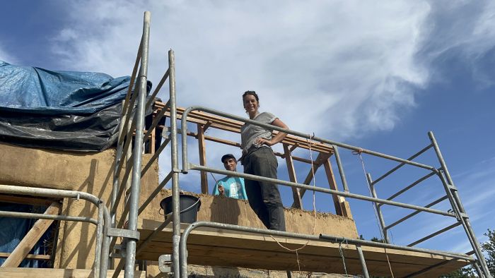 C’est reparti pour le dernier chantier de l’année. Encore quelques bottes à insérer avant de commencer la charpente dans la semaine.