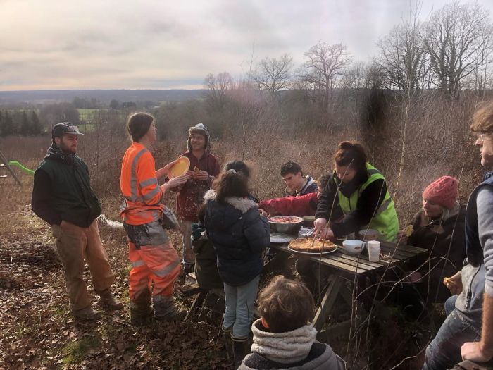 ça fait un bout de temps qu'on ne vous a pas donné de nouvelles ! Le chantier tourne toujours à plein régime malgré la météo pas toujours très commode. Fin janvier, nous avons réunis des gens des environs envieux de découvrir ce mode de construction. Nous étions 11 sur un dimanche très...Afficher la suite ça fait un bout de temps qu'on ne vous a pas donné de nouvelles ! Le chantier tourne toujours à plein régime malgré la météo pas toujours très commode. Fin janvier, nous avons réunis des gens des environs envieux de découvrir ce mode de construction. Nous étions 11 sur un dimanche très convivial. Comme vous pouvez le constater, le 7ème (et dernier) dôme, qui n'étais pas du tout entamé, en a pris un coup. Merci à eux !