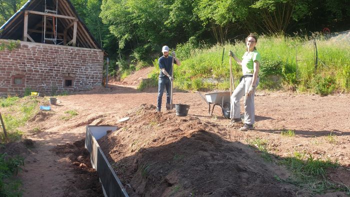 Ci dessous l'aménagement extérieur par Cindy et Thibault avec notre 1er pignon en arrière plan, refait à neuf l'année dernière.