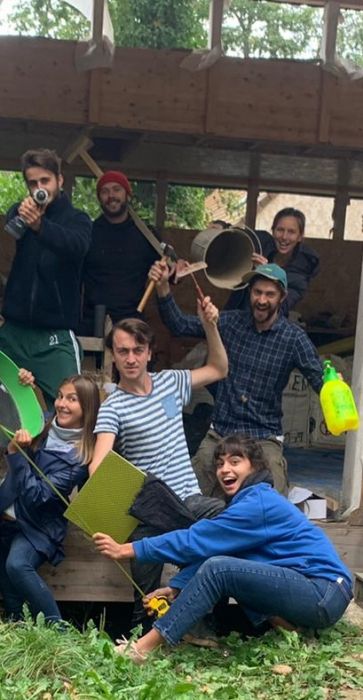 Première session de l‘été sous le signe de la terre avec la préparation de briques pour le cloisonnement futur.