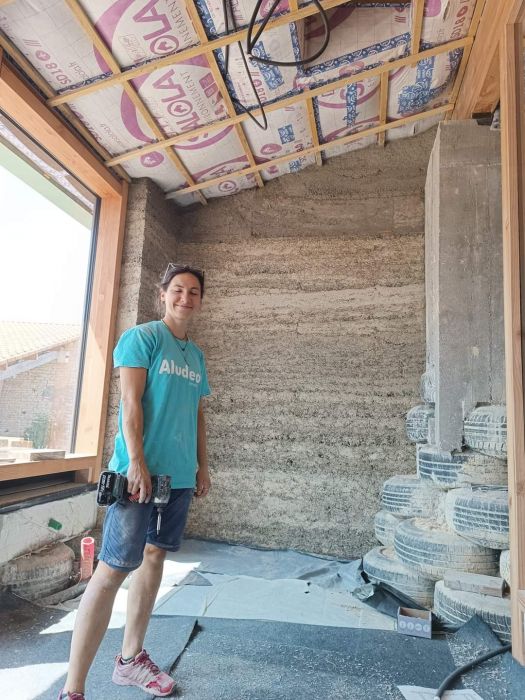 Les corps d'enduit des murs intérieurs en pneus s'approchent aussi de la fin !