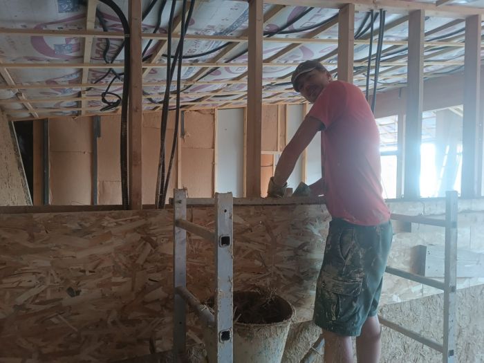 Cloisons terre paille en cours, 3e banche réalisée, très contents du résultat ! N'hésitez à nous contacter pour venir les weekends et certains jours en semaine ;)