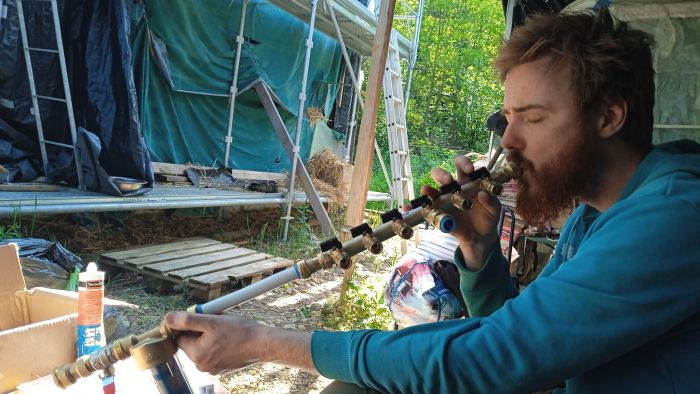 On fera de l'élec, de la plomberie, du travail de bois, de l'enduit terre de finition, de la pose de parquet, poser un pare-pluie + bardage, poser 2 fenêtres... Le tout à l'intérieur quand la météo nous le demandera !