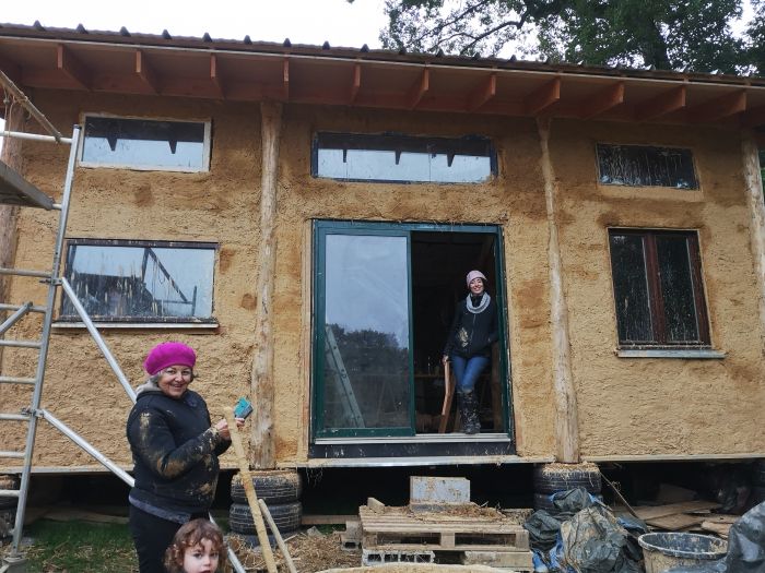 Prochaines étapes : barbotine, élec, enduits, volige, plancher, gouttière, et une cloison intérieure à faire en terre paille.