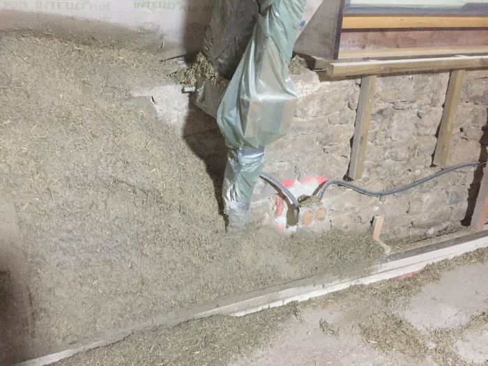 La projection de chaux-chanvre est presque terminée ! Demain, on termine de souffler le béton végétal, on dresse les parois, et on débâche le chantier. Ensuite, un peu de repos avant d'attaquer la finalisation de l'isolation des rampants, qui est prioritaire. Si on peut avoir totalement fini...Afficher la suite La projection de chaux-chanvre est presque terminée ! Demain, on termine de souffler le béton végétal, on dresse les parois, et on débâche le chantier. Ensuite, un peu de repos avant d'attaquer la finalisation de l'isolation des rampants, qui est prioritaire. Si on peut avoir totalement fini le lot "isolation" à Noël, et avoir passé la commande des cloisons, c'est le top :) Sans oublier de passer un peu de temps au verger, qui a besoin de nos soins !