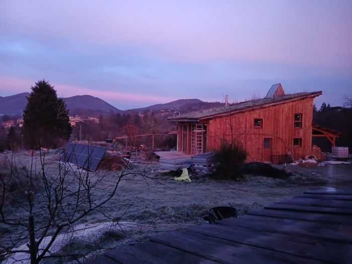 Simplement une photo de la maison au lever de soleil