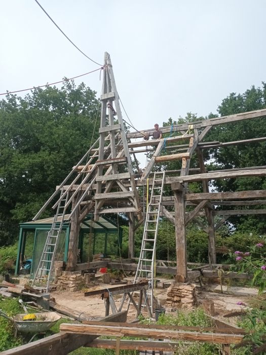 Un grand merci à Valérie et Josselin pour cette voltige bien réussie, sur fond de bonnes bouffes et de guitare. On va pouvoir poser la "lucarne" XL, qui est en fait un nouveau pan de toiture, à la même hauteur que la faîtière actuelle. Go go go ! Et les autres musiciens, viendez !