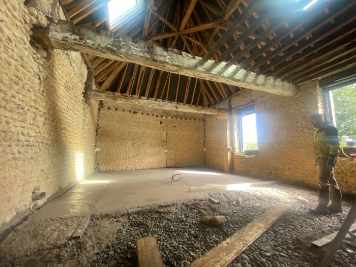 Étant dans les délais estimés par mon fidèle accompagnateur à l'autorénovation, Yan, nous avons démarré la dalle chaux/pouzzolane ce lundi !