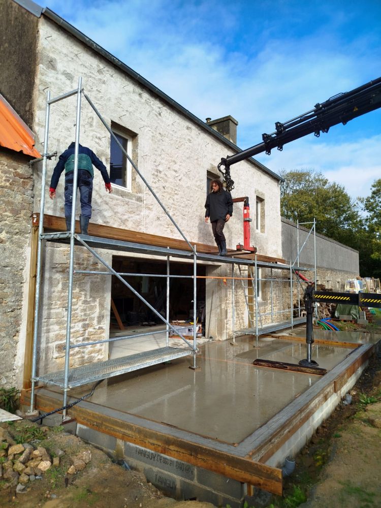 - Réceptionner la poutre de 11m sur ces poteaux, qui servira de fixation haute de la véranda