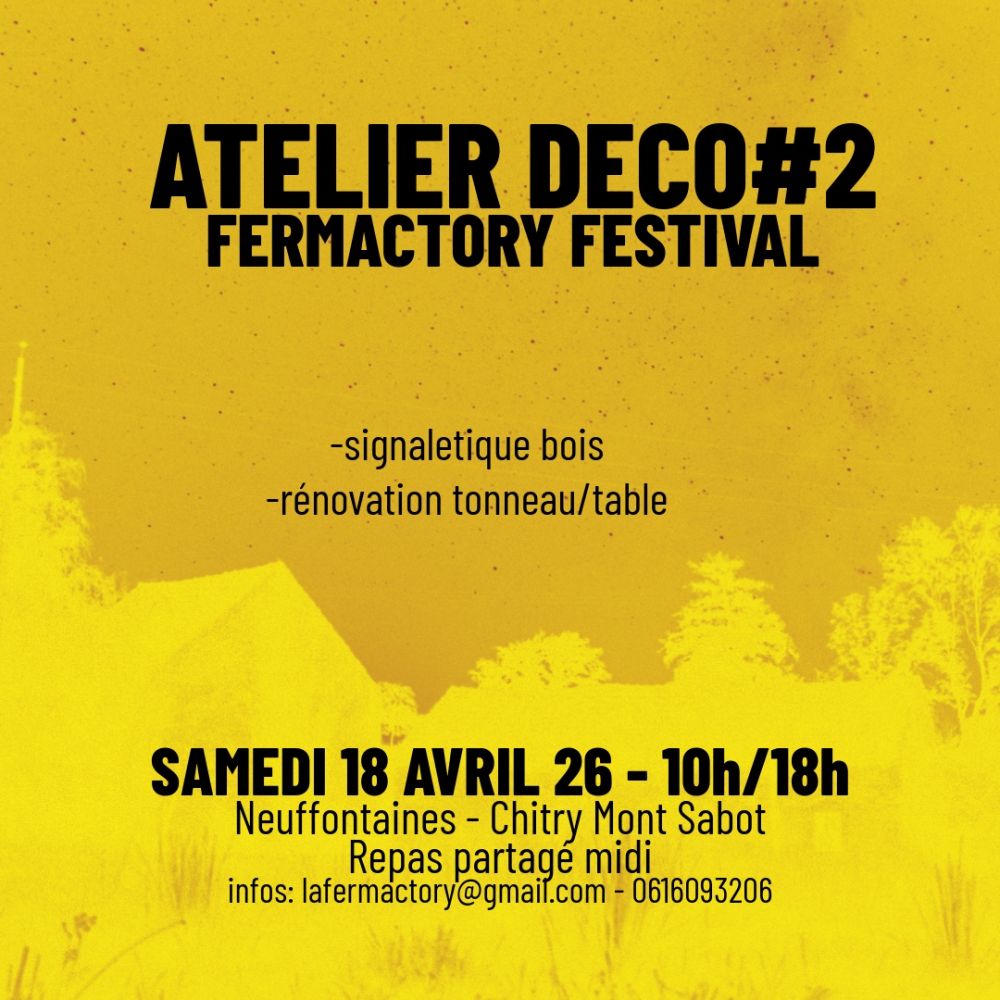 Venez découvrir le projet de tiers lieu tout en donnant un coup de main à la déco et séno du fermactory festival qui se déroule du 13 au 26 avril 26.