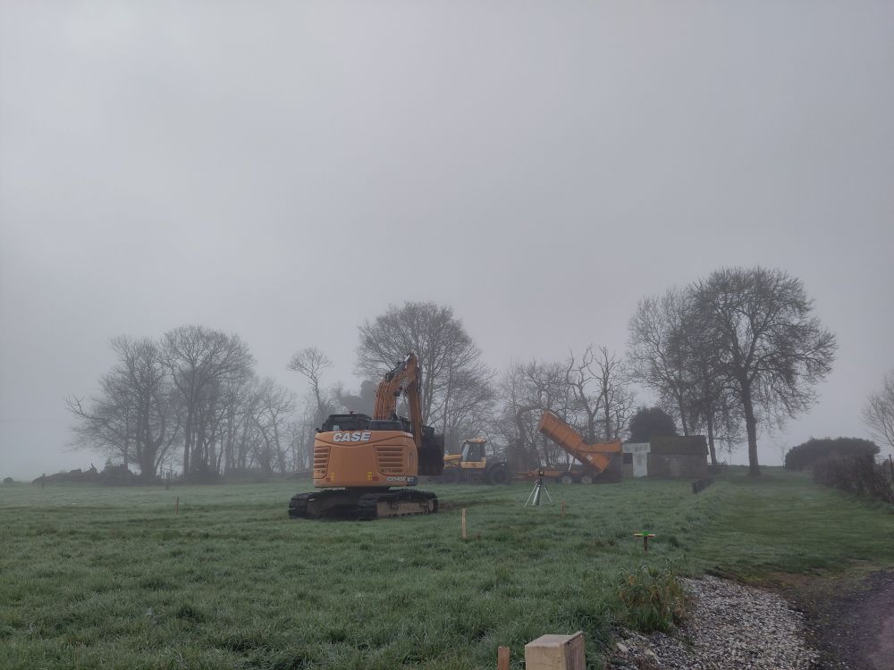 Ça y est, le chantier est démarré ! Ponctuellement, en plus. Notre terrassier (Morgan Guérin) et notre maçon (Cap Chez Vous) ont bien bossé et ont su s'adapter et changer de plans plus qu'une fois face à de nombreux inconnus (à savoir qu'est-ce qui se trouve sous le sol, où est le bon sol...Afficher la suite Ça y est, le chantier est démarré ! Ponctuellement, en plus. Notre terrassier (Morgan Guérin) et notre maçon (Cap Chez Vous) ont bien bossé et ont su s'adapter et changer de plans plus qu'une fois face à de nombreux inconnus (à savoir qu'est-ce qui se trouve sous le sol, où est le bon sol et à s'adapter à une pente plus importante que on ne pensait). Pour de nombreuses raisons, on a basculé de système de fondations et on se retrouve maintenant avec un vide sanitaire, qui a ses avantages. On n'est pas fiers de la quantité de béton que ça représente, mais dû aux contraintes du site et de notre budget, c'est ça que ça a donné. La maison sera bien solide, c'est sûr, et une fois cette étape passée, on sera de retour sur la voie de la construction écologique.