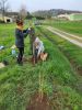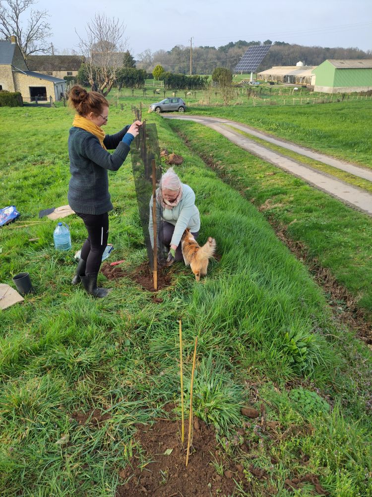 Nous avons commencé le montage de la serre (qui sert d'abri le temps du chantier, avant de servir comme véritable serre maraîchère dès la fin des travaux). On a planté 75 mètres linéaires de haies et d'arbres d'espèces locales grâce à une aide de la commune à la plantation de haies bocagères.