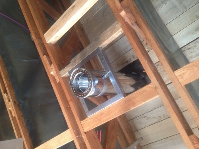 Previously sur le chantier, le chanvre en vrac a été passé dans tout le plafond, par l'intérieur, sacré mission !