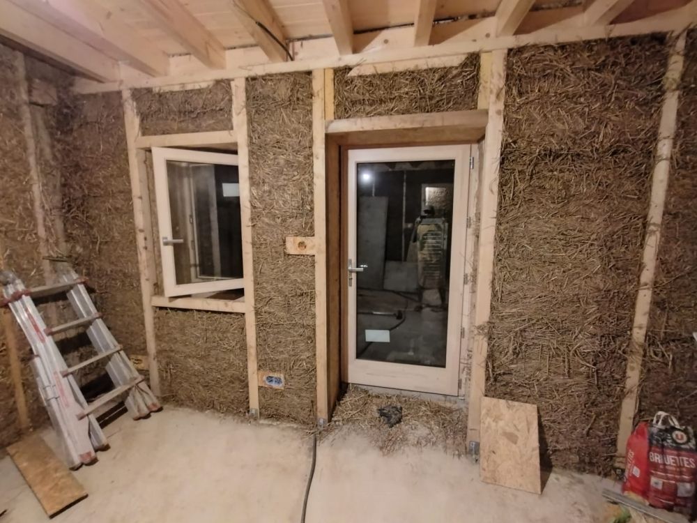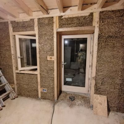 En 2024, la reconstruction de la partie d’habitation en ossature bois/paille à été réalisé et la maison à été mise hors d'eau et hors d'air!