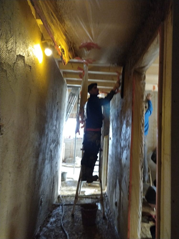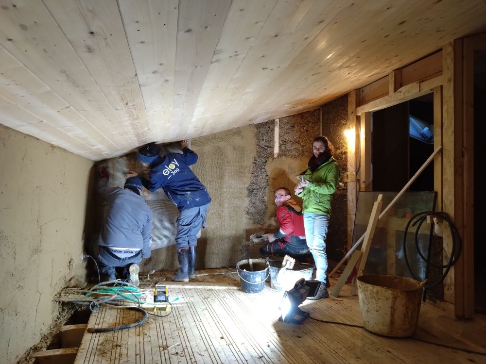 Programme de Décembre → Première couche "corp d'enduit argile", réalisé avec l'entreprise CalyClay.