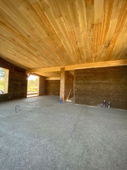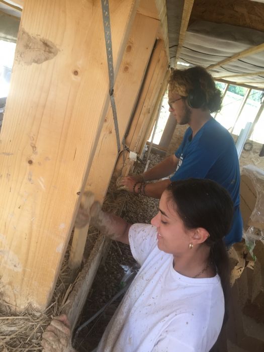 Nous avons réalisé les fondations cyclopéennes et allons poser la structure bois en mai. en suivant nous réaliserons les murs en terre allégée avant de les recouvrir d'un enduit terre.