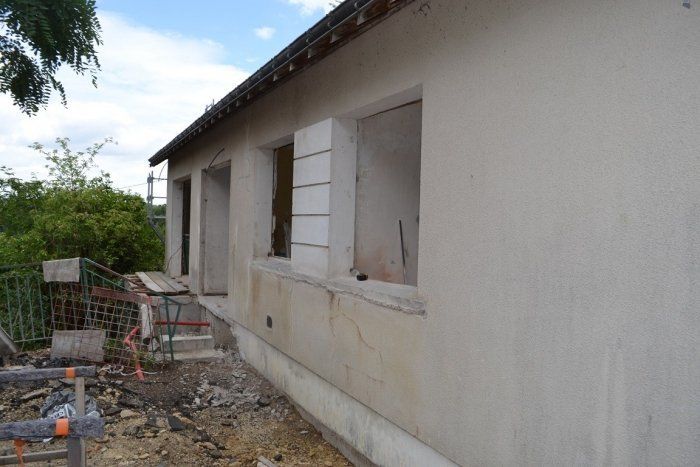 Sur une maison de 1975, nous faisons faire l'isolation par l'extérieur en ouate de cellulose insufflée et par dessus nous réalisons l'enduit traditionnel à la chaux.